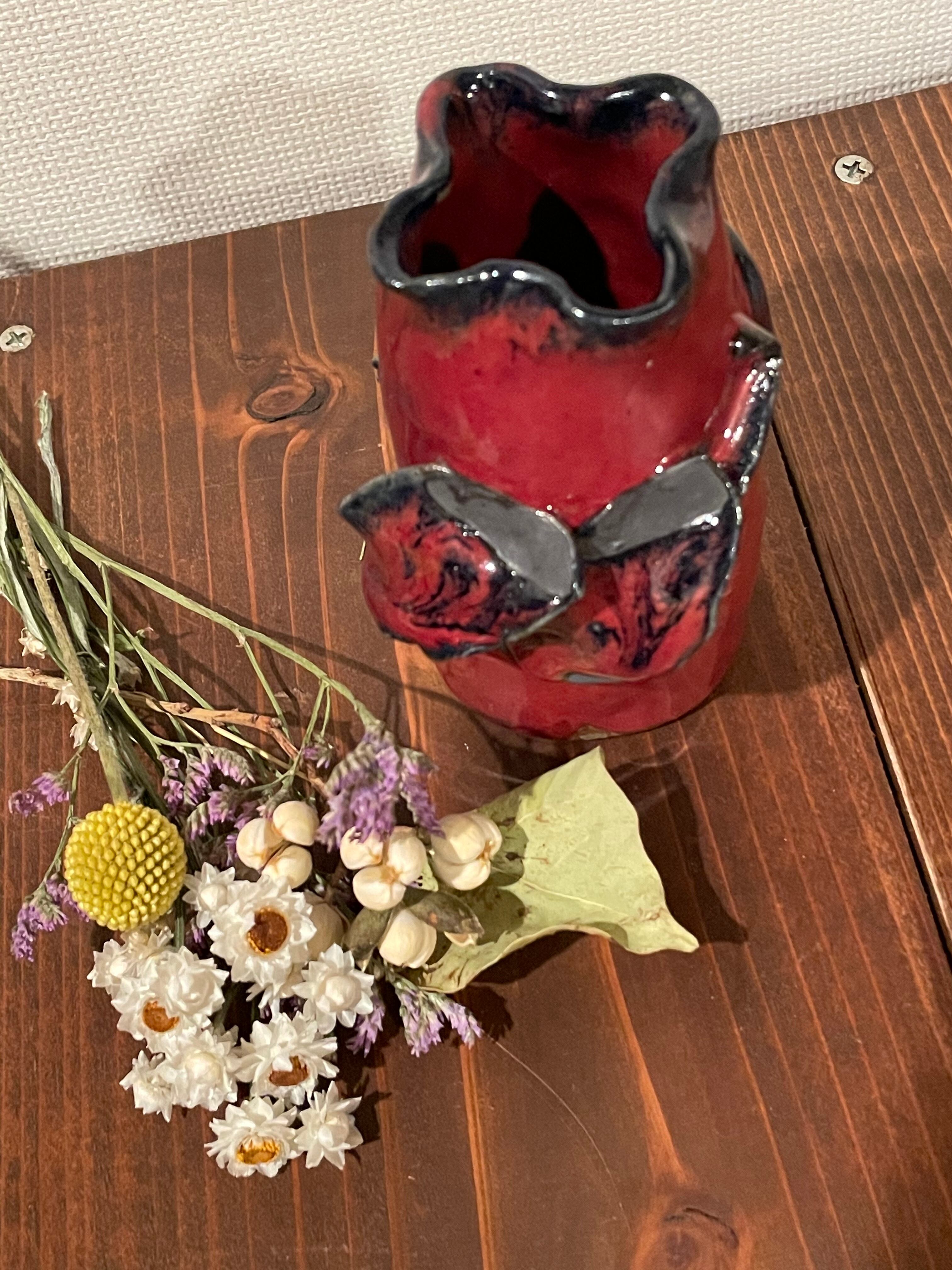 (釉薬が流れてしまう事もあり今後また赤の一輪挿しは製作できるかどうか…)